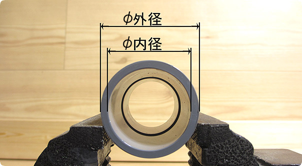 塩ビ管には呼び径があり、呼び径(mm)は内径と外形のサイズとは異なります。