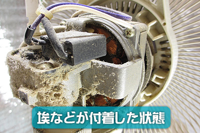 しかし、外気を吸い込む際にチリ・埃(粉塵)なども一緒に吸い込んでしまうので、定期的にモーター部に付着した埃などを取り除くメンテナンスの必要があります。