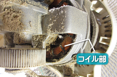 モーターカバーは簡単にはずすことができ、当サイトでも紹介しているブロワーなどを使用すると、内部に貯まった埃や粉塵などを安易に取り除くことが可能です。(エアー缶・ブロワー・コンプレッサー等)
