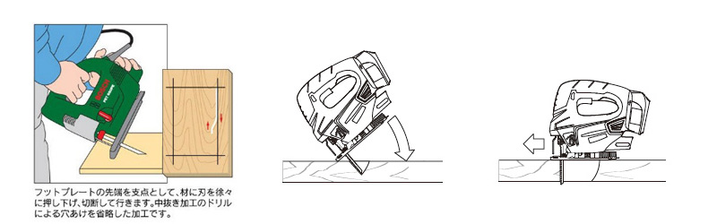 〔木工用〕には〔厚材用〕〔曲線切り用〕〔円切り用〕〔合板用〕〔仕上げ用〕など様々な種類があるので、用途にあったブレードを装着しないとうまく切断できない場合があります。