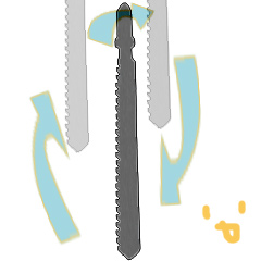 ブレードは幅が狭く柔らかく、切断中に進行方向を曲げることができるので、曲線加工や切り抜き加工に向いています。