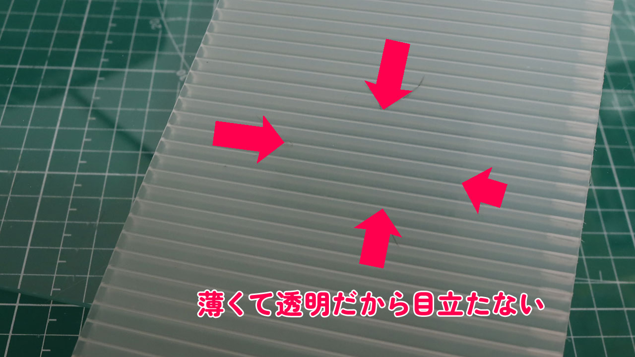 プラダンを簡単に真っ直ぐ切る方法は下記事を参考にしてください。