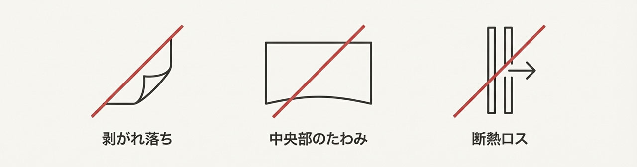一方、これまで採用してきた厚手の強力テープは保持力は申し分ないものの、テープの厚み分だけ窓との間に隙間が生じてしまい、そこから空気が対流することで断熱性能が低下してしまうデメリットがありました。