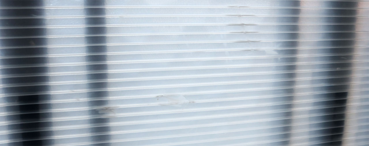 ここで問題となるのが樹脂特有の性質です。衝撃が加わった箇所は、樹脂の内部構造が変化して白く濁る白化を起こします。数年も経つとあちこちにできた白い筋や打痕が増えて、汚れではないものの、白化した傷が無数にある窓は、どこか古びて手入れが行き届いていないような、美しくない印象を与えてしまいます。