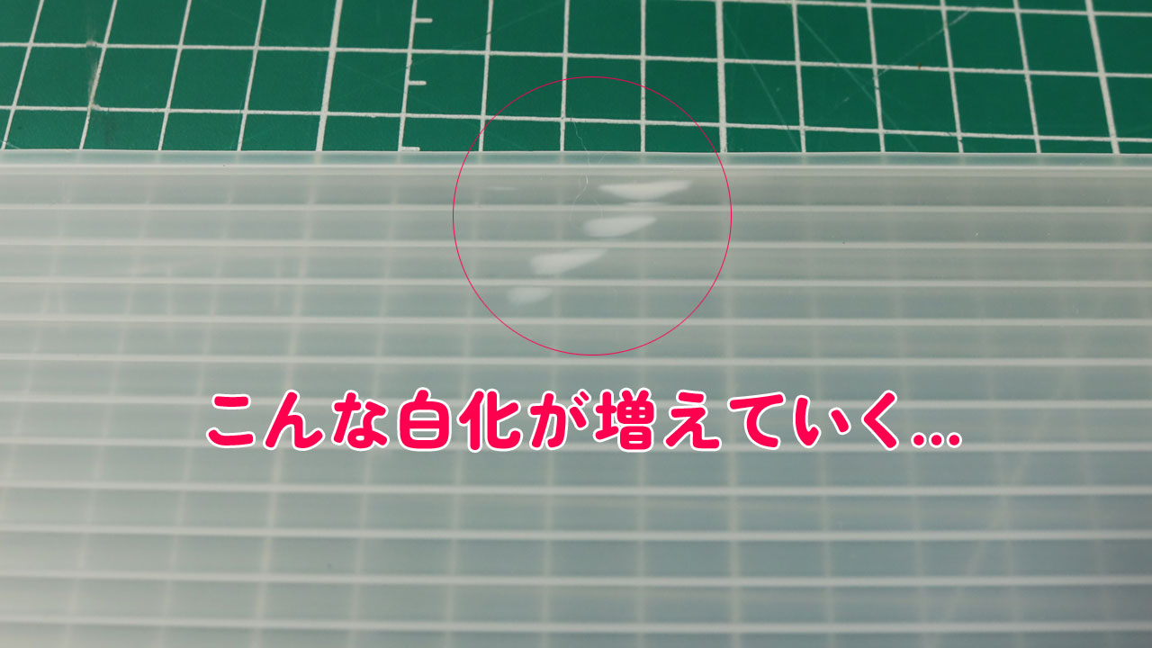 年数を重ねるほど見た目の劣化が目立つようになったことから、白化した傷や打痕がついても目立ちにくい不透明の白色のプラダンを選定すべきだと後悔しました。